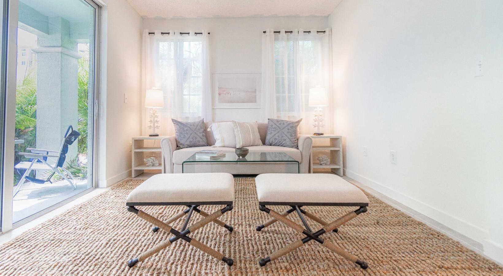 • a living room with a glass door