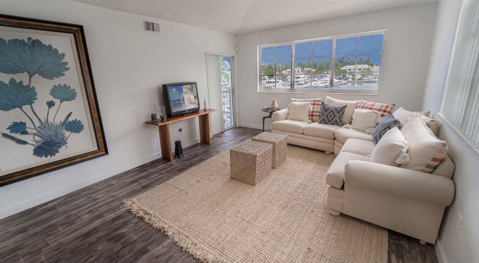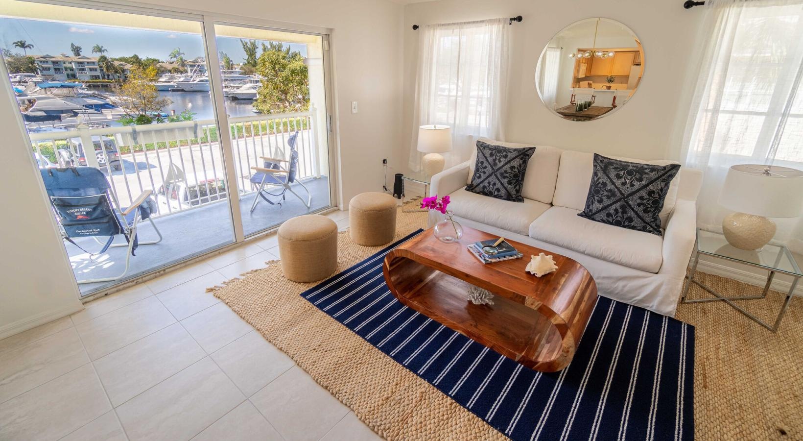 • a living room with a large glass door