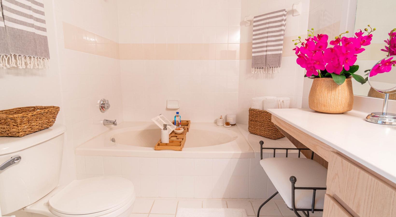 • a bathroom with a tub toilet and sink