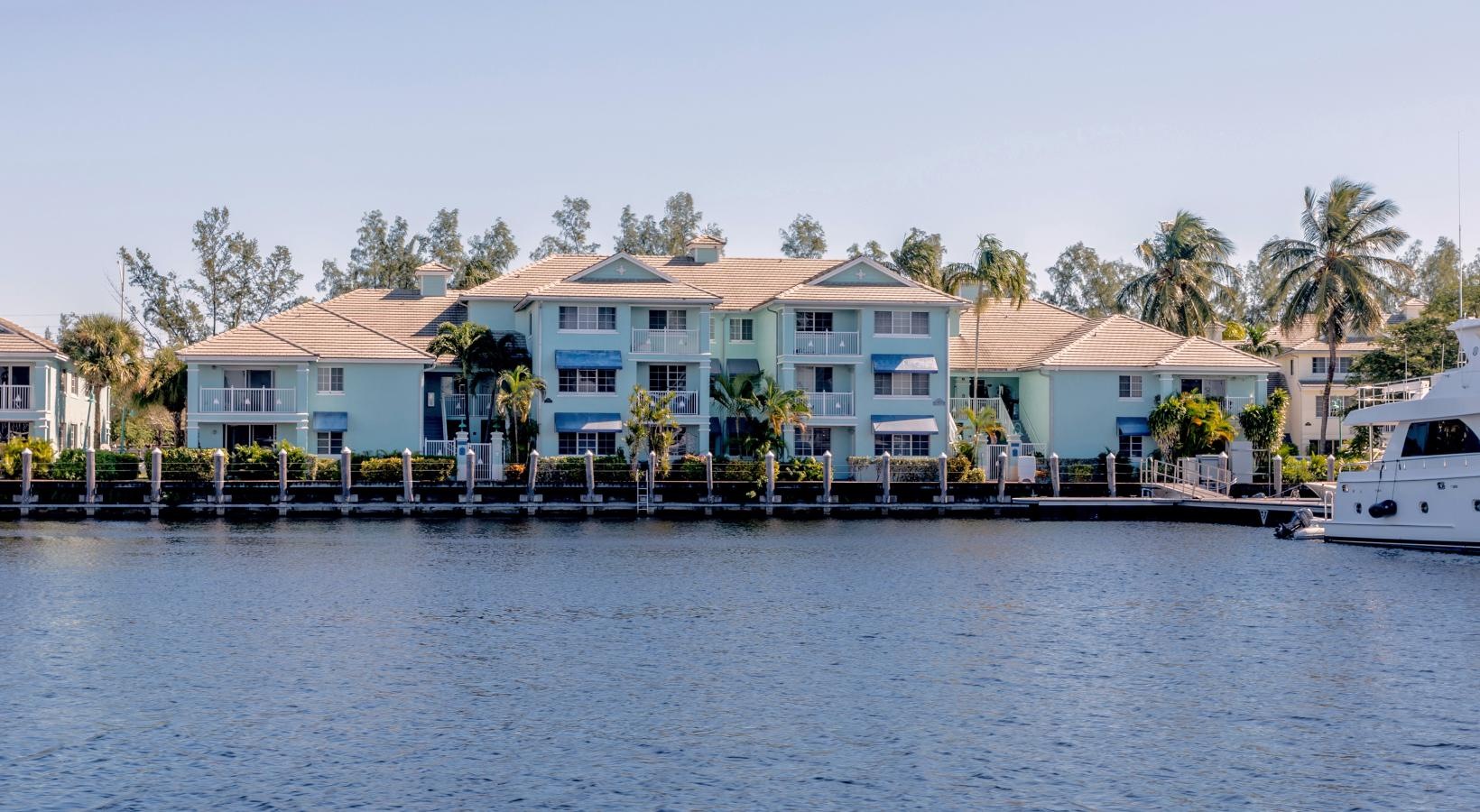 • a row of houses on a dock